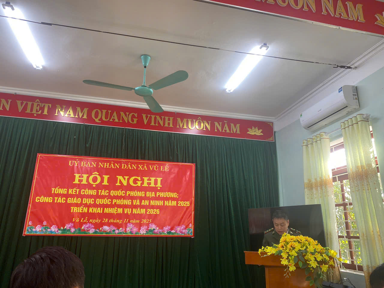 Ngày 28 tháng 11 năm 2025, UBND xã Vũ Lễ tổ chức Hội nghị tổng kết công tác quân sự, quốc phòng địa phương và công tác giáo dục quốc phòng – an ninh năm 2025; triển khai nhiệm vụ năm 2026.